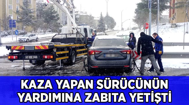 İzmit ilçesi Kurtuluş Bulvarında seyir halinde olan araç, kar yağışı nedeniyle sürücüsünün direksiyon hakimiyetini kaybetmesi sonucu bariyerlere çarptı. Aracı kullanan anne ve çocuğun yardımına Kocaeli Büyükşehir Belediyesi Zabıta ekipleri koştu. Büyükşehir zabıtası, kaza yapan araç sürücüsü anneye yardımcı olurken, küçük çocuğu da soğuk havada üşümemesi için kendi araçlarına aldı.