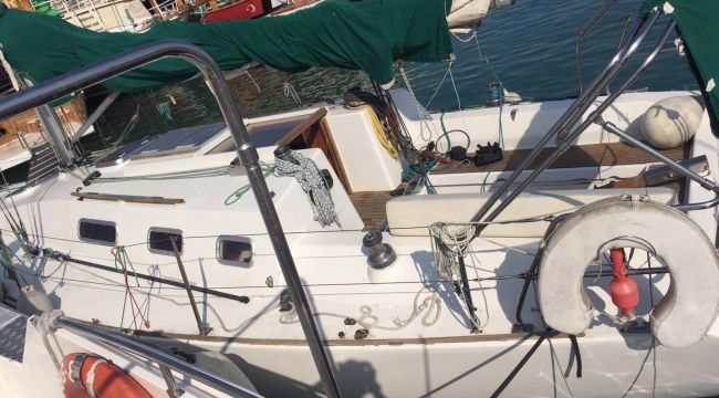 Ayvalık’ın Maden Adası açıklarında ihraç deniz teğmeni Ö.P.'nin 340 bin liraya satın aldığı kendi üzerine kayıtlı tekne Sahil Güvenlik Komutanlığına bağlı ekipler tarafından yapılan ısrarlı takip sonucu yakalandı.