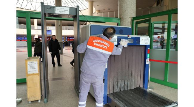 Kocaeli Büyükşehir Belediyesi iştiraklerinden UlaşımPark, işletmesini yürüttüğü Kocaeli Şehirlerarası Otobüs Terminalinde temizlik ekipleriyle 24 saat temizlik yapıyor. UlaşımPark tarafından 7 gün 24 gerçekleştirilen temizlik uygulamalarının yanı sıra, sürekli temas edilen noktalar günde iki kez dezenfekte ediliyor. Gün içerisinde de tüm alanlar kesintisiz siliniyor, temizleniyor. Terminal esnafının bankolarına kadar dezenfekte eden temizlik personelleri silinmedik tek nokta bırakmıyor. Yolcuların en çok kullandıkları peronlar bölgesine de ek önlemler alınıyor. Kocaeli Büyükşehir Belediyesi Veteriner Şube ile sürekli iletişim halinde olan Terminal Müdürlüğü, peronlar bölgesini de ilaçlatarak yolcuların daha temiz, daha sağlıklı bir ortamda seyahat etmesini sağlıyor. Toplamda 69 kamera ile güvenlik görevlileri tarafından gözetlenen terminalde olası acil müdahaleler de temizlik ekiplerine telsizle konum bildirerek anında temizlik uygulaması sağlıyor.