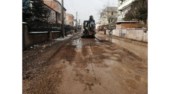 Körfez Belediyesi, altyapı çalışmalarının tamamlandığı ve üstyapı öncesinde kar yağışı nedeniyle bozulan yollarda, dolgu çalışması gerçekleştirdi.