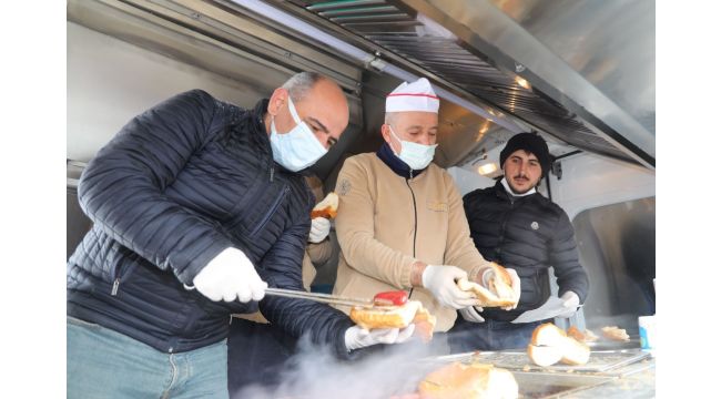 Körfez Belediyesi, İlimtepe’de kar yağışının keyfini süren vatandaşlara sucuk ekmek ikramında bulundu.