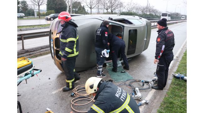 Kaza, sabah saat 07.15 sıralarında İzmit Ömer Türkçakal Bulvarı Gölcük istikametinde meydana geldi. Edinilen bilgiye göre, İzmit'ten Gölcük istikametine gitmekte olan A.T.M. adlı sürücü idaresindeki 41 NT165 plakalı lüks otomobil, yağmur nedeniyle kayganlaşan yolda kontrolden çıktı. Savrulan araç yol kenarındaki bariyerlere çarparak yan yattı. Kazada araç içinde bulunan Ş.D. hafif sıyrıklarla kendini dışarı atarken, araç sürücüsü A.T.M. ise bulunduğu yerde sıkışarak yaralandı.