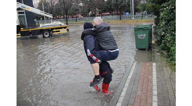 Olay, Kocaeli'nin İzmit ilçesi Körfez Mahallesi Şehit Rafet Karacan Bulvarı üzerinde kullanılmayan bir alışveriş merkezinin otopark girişinde meydana geldi. Edinilen bilgiye göre, Sunay Mesut idaresindeki 41 FS 774 plakalı Mitsubishi marka otomobilin sağ ön tekerleği, mazgal demiri olmayan çukura sıkıştı. Biriken ve yükselen yağmur suları sebebiyle araçta mahsur kalan Mesut'u gören vatandaşlar 112 Acil Çağrı Merkezi'ne ihbarda bulundu. İhbar üzerine olay yerine itfaiye ve polis ekipleri sevk edildi. Kısa sürede olay yerine gelen itfaiye ekipleri, sürücüyü mahsur kaldığı yerden çıkartmak için çalışma başlattı. Yağmur suyunun yükselmesiyle otomobilinden inemeyen sürücüyü bir itfaiye eri kucağına alarak araçtan çıkardı.