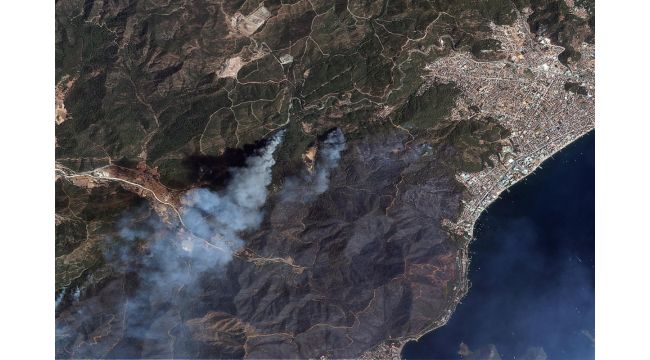 Milli Savunma Bakanlığı, Muğla'nın Marmaris ve Antalya'nın Manavgat ilçelerindeki orman yangınları ile ilgili uydudan çekilmiş görüntüleri sosyal medya hesaplarından yayınladı. Yüksek çözünürlüklü yerli keşif uyduları Göktürk-1 ve Göktürk-2, yangın söndürme çalışmalarında kullanılması için Manavgat ve Marmaris'teki orman yangınlarını uzaydan görüntüledi. Yayınlanan görüntülerde yangınların büyüklüğü ve etki alanı gözler önüne serildi.