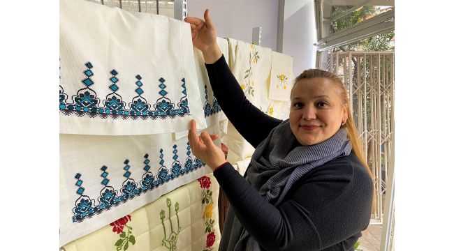 Kendisi gibi eğitimlerini tamamlayıp kendi iş yerini açan kadınlarla birbirlerine destek olduklarını dile getiren Arıcı, “İlk önce el nakışı ve mefruşat kursu aldığını aktaran Arıcı, “İşte nevresimdir, havludur, bunlara dantel dikimi, nevresimlere dantel dikimi veya sade nevresim yapmak istiyorsak model çalışıyoruz kalıplarımızla birlikte. Mefruşat kursuna gittim, 2 yıl boyunca eğitim aldım. İşler şu an umduğumdan daha iyi, daha güzel gidiyor. En azından insanlar merak ediyor. Ben bir de karma çalışıyorum. El nakışı da yapıyorum aralarına. Bazı arkadaşlarında mesela iğne oyaları oluyor onlarla birlikte çalışıyoruz. Bir grup arkadaşımızla paslaşmalarımız da oluyor bizim. Ben mesela iğne oyası yapamıyorum, diğer arkadaşım iğne oyası yapıyor. Ondan ben iğne oyası satın alıyorum. O nakış yapamıyor, ben nakış yapıyorum. Ben ona para karşılığı iş yapıyorum. Çevremden çok olumlu tepkiler aldım. Herkes benim adıma çok sevindi. Zaten ben bir yerim olsun diye istiyordum. Daha önceden de evde biraz danteldir, nakıştır bu tarz şeyler yapıyordum ama mefruşat, nevresim dikme işi başlı başına bir olay. Santimi santimine dikmek lazım. Kaydırmamak lazım. Bunun da eğitimini alınca bu işe daha çok merak sardım” şeklinde konuştu.