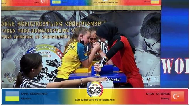 Kartepe Belediyesporlu Miray Aktoprak, Dünya Bilek Güreşi Şampiyonası'nda Dünya 5'incisi oldu.