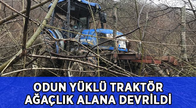 Odun yüklü traktör ağaçlık alana devrildi: 1 yaralı