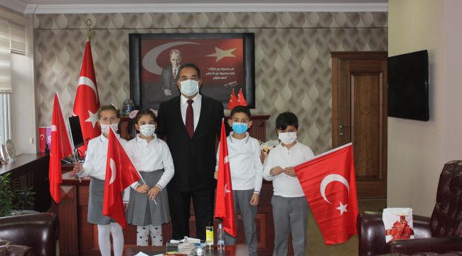 Hayat Bilgisi dersinin “Kentimizi Yönetenler” konulu dönemsel proje ödevi ile ilgili röportaj yapmak için velileri ile birlikte 2. Sınıf öğrencileri Yusuf Eymen Gürz, Miray Özel, Ece Koçhan ve Yusuf Enes Karataş Kaymakam Mustafa Güler'i makamında ziyaret etti.