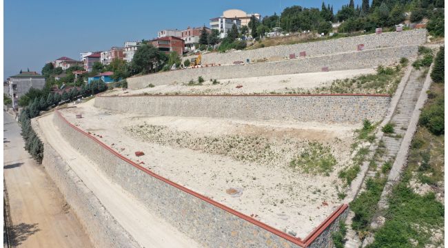 Park ve Bahçeler Dairesi Başkanlığı tarafından Dilovası Orhangazi Mezarlığı’nda yürütülen çalışma dahilinde, mezarlığın dik olan kısımlarındaki kademe çalışmaları bitirildi. Yol oluşturma çalışması kapsamında ihtiyaç duyulan 600 metrelik taş duvar imalatı da tamamlandı.