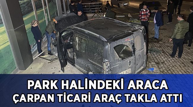 Park halindeki otomobile çarpan hafif ticari araç takla attı