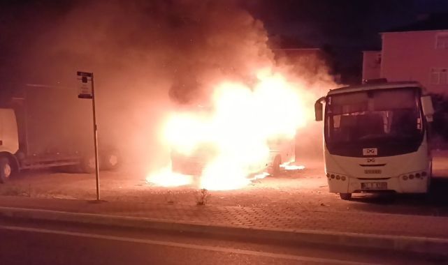 Gebze ilçesinde park halindeki midibüs alev alev yandı. Yan taraftaki kamyona da sirayet eden yangın itfaiye ekiplerinin müdahalesiyle söndürüldü.