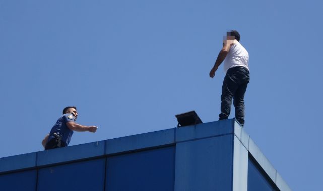 İzmit Kaymakamlığının çatısına çıkarak intihara kalkışan kişi, polis tarafından düşmekten son anda kurtarıldı. O anlar saniye saniye kaydedilirken, vatandaşlar ise olup biteni meraklı gözlerle izledi.