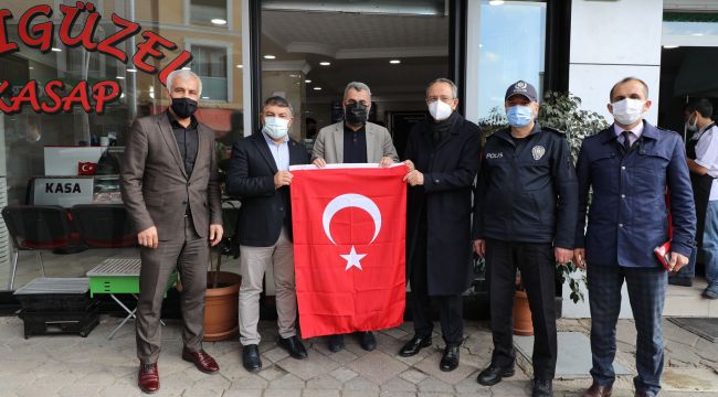 Ziyaretlerde esnaf ve vatandaşlarla sohbet eden Kaymakam Kubilay "Bayrak bizim kutsalımız evinde ve dükkanın da bayrağı olmayanların da bayrakları olsun istedik. Esnafımızın ve vatandaşlarımız ile hasbihal de ettiğimiz ziyaretlerde, birlikte nice bayramlar geçirme temennisinde bulunduk.