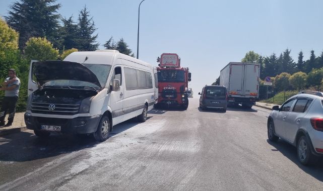Gebze ilçesinde servis minibüsünün motor kısmında çıkan yangın büyümeden kontrol altına alındı.