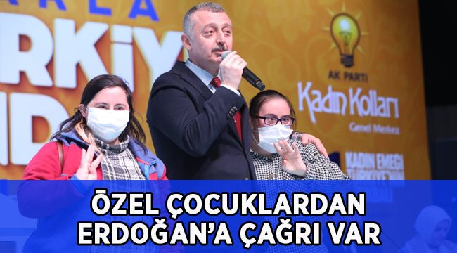 Sahneye gelen özel çocukları kucaklayan Başkan Tahir Büyükakın, kendisinden isteklerini sordu. Çocukların, “Tayyip Amcamıza seslenmek istiyoruz” demeleri üzerine ise mikrofonu kendilerine verdi. Heyecandan adeta titreyen çocuklar, “Tayyip Amca seni çok seviyoruz. Seni görmek istiyoruz” diye seslendi. Çocukların Cumhurbaşkanına yönelik sevgisi salonda duygusal anların yaşanmasına neden oldu. Tertemiz ve samimi sevgileriyle gönülleri titreten çocuklar alkışlarla karşılandı.
