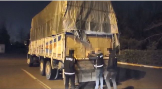Kocaeli Tem Otoyolu'nda polis ekipleri tarafından durdurulan kamyonda arama yapıldı, 7 milyon 630 bin adet gümrük kaçağı makaron ele geçirildi.