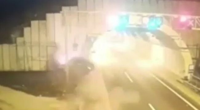 Kaza nedeniyle trafikte oluşan uzun kuyruk havadan görüntülendi. Öte yandan, kaza anı ise anbean kameraya yansıdı.