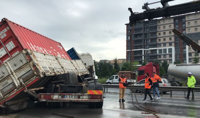 TEM'de tır makaslayınca trafik durdu, araçlar kontak kapattı