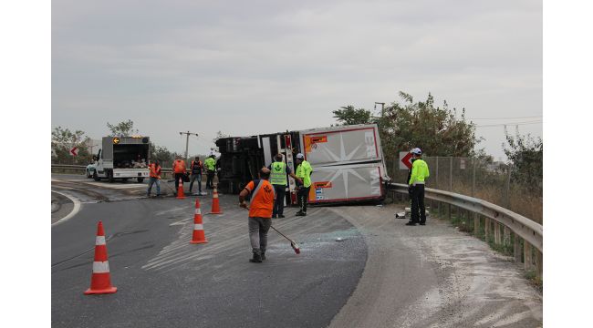 Kaza, Gebze ilçesi TEM Otoyolu D-100 bağlantı yolu İstanbul istikameti üzerinde meydana geldi. Edinilen bilgiye göre, B.K. idaresindeki 34 COE 080 plakalı tır ile A.İ. yönetimindeki 58 YE 234 plakalı yolcu otobüsü çarpıştı. Çarpışmanın şiddetiyle tır devrilerek yan yattı. Kazada tır şoförü, tırın yedek şoförü K.K. ve otobüste muavin olarak bulunan G.U. yaralandı. Kazayı görenler durumu 112 Acil Yardım ekiplerine bildirdi. İhbar üzerine adrese itfaiye, sağlık ve polis ekipleri sevk edildi.