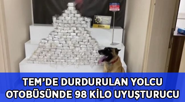 Kocaeli’de, TEM Otoyolu üzerinde durdurulan yolcu otobüsünde 98 kilo 400 gram eroin ele geçirildi.