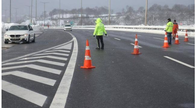 "Anadolu Otoyolu Bolu Tünel bölgesinde bulunan viyadüklerin sol şeridinde yer alan ve trafik güvenliğini tehlikeye düşüren kar yığınlarının temizliği için; Ankara yönü trafiği, 30 Ocak 2022 tarihinde saat 01.00-04.00 arasında Kaynaşlı kavşağından D-100’e aktarılacaktır."