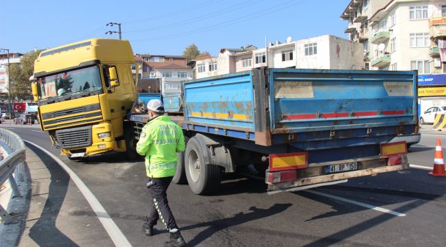 Kocaeli D-100 Karayolunda önüne çıkan otomobile çarpmamak için ani fren yapan tır, bariyerlere çarparak durabildi. Tır şoförü yaralanırken, trafikte yoğunluk yaşandı.