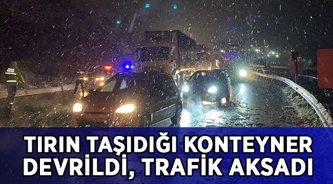 Körfez ilçesi D-100 Karayolu üzerinde karlı yolda kayan tırın taşıdığı konteyner yola devrildi. Tır sürücüsü hafif yaralanırken, D-100 uzun süre ulaşıma kapandı.