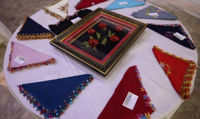 Konuşmaların ardından KO-MEK bohçasını yakında evlenecek olan kursiyere hediye eden Başkan Büyükakın, daha sonra protokolle birlikte açılış kurdelesini keserek sergi alanını gezdi.