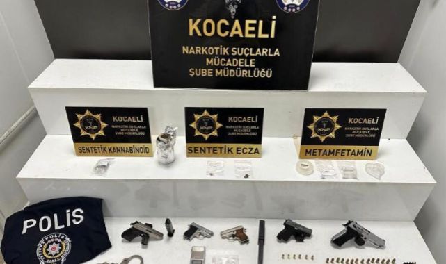 Başiskele ilçesinde uyuşturucu ticareti yapan şahsın evinde yapılan aramada polis yeleği, kelepçe, tabanca, fişek ve uyuşturucu ele geçirildi. Olayla ilgili şüpheli şahıs tutuklanarak cezaevine gönderildi.Kocaeli'de Narkotik Suçlarla Mücadele Şube Müdürlüğü ekiplerince Başiskele ilçesinde uyuşturucu madde satan ve bulunduran şahıslara yönelik çalışma yaptı. Yapılan çalışmalarda içici olduğu tespit edilen 4 şüpheli üzerinde yapılan aramada bir gram metamfetamin, tabanca, 6 fişek ele geçirildi. Şüpheliler hakkında TCK 191 kapsamında işlem yapılarak serbest bırakıldı. Uyuşturucu madde ticareti yaptığı tespit edilen A.K isimli şahsın ikametinde yapılan aramalarda ise polis yeleği, kelepçe, 4 tabanca, 31 fişek, 3 sentetik ecza, 2 gram metamfetamin, bir gram sentetik kannabinoid, hassas terazi ele geçirildi. Malzemelere el konulurken gözaltına alınan şahıs yapılan işlemlerinin ardından çıkarıldığı mahkemece tutuklanarak cezaevine gönderildi.