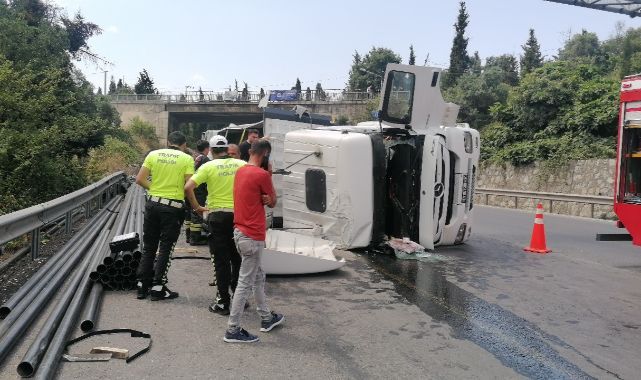 Gebze ilçesinde virajı alamayan demir boru yüklü tır devrildi. Araçta sıkışan sürücü ise kazayı hafif sıyrıklarla atlattı.